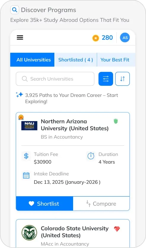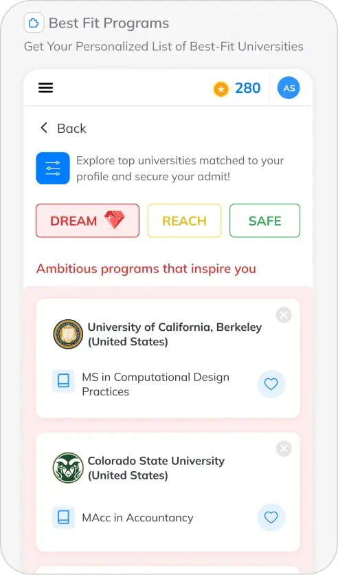 Find your ideal universities with personalized suggestions tailored to your profile—covering dream, reach, and safe options. Get recommendations that overseas education consultants in Mumbai use to maximize admissions success.