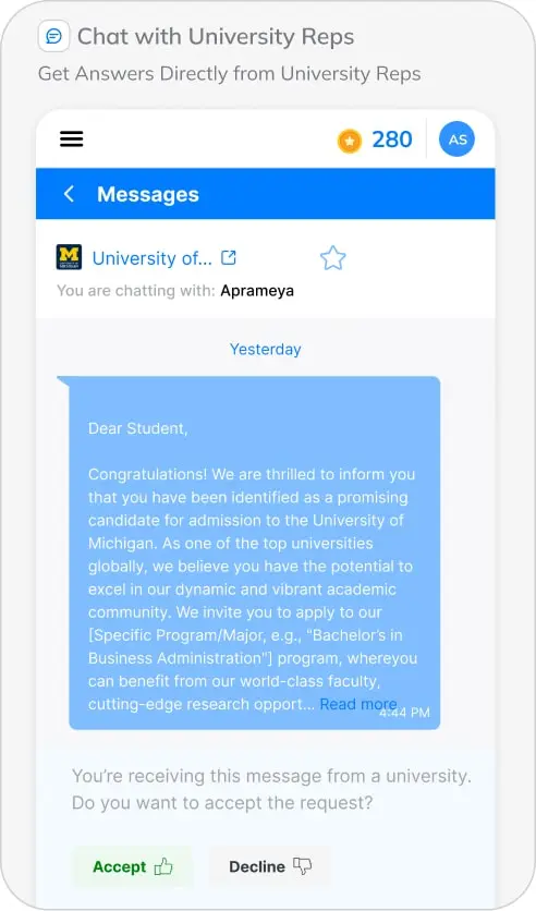 Talk directly to official university representatives to get answers about programs, admissions, and more.